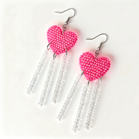 발렌타인 데이 화살표 하트 비즈 귀걸이 로맨틱 크리스탈 & 시드 비즈 댕글 귀걸이 여자 친구를위한 선물